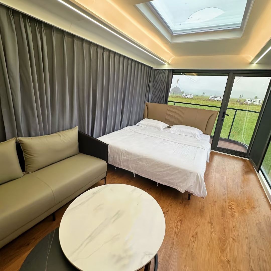 Cápsula espacial desmontable modular M7 con unidades modulares para ensamblaje rápido/desmontaje, es duradero, ecológico y de sonido/calor aislado. Puntos de venta clave: bajo costo de implementación, temas personalizables y reutilizables. Ideal para hoteles de área escénica (expansión de capacidad rápida), casas de casa únicas (diseño temático) y sitios de campamento (configuración fácil en áreas remotas), combinando estética futurista con una vida práctica al aire libre.