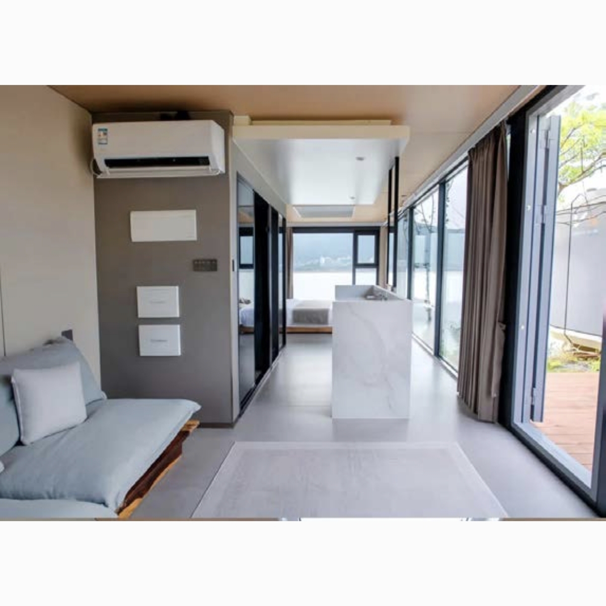 Reconfiguración del espacio flexible : la estructura modular permite un ajuste rápido de diseños internos sin renovación compleja, como combinar o separar salas para satisfacer las necesidades cambiantes, como agregar un espacio de trabajo temporal o en la expansión de áreas de vida.